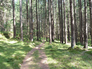More open troll woods, rocky cliffs, and one more medium sized lake as you go towards one of the highlights of this section, the large lake Store-Väktor. It is a good lake with fine, clean water and easy stone shores to relax on and take a swim in the deep waters, which we did and then enjoyed a luxurious lunch of pasta with Parmesan cheese and wild mushrooms.